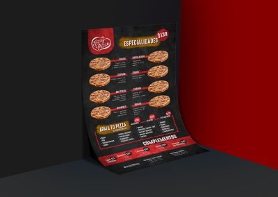 Como agencia creativa nos encargamos de realizar una identidad visual corporativa para la empresa, empezando por el diseño de su caja para pizzas, su menú y fotografías de sus especialidades en diferentes tomas para aplicaciones distintas, con la finalidad de proyectar con profesionalidad sus sabores únicos.